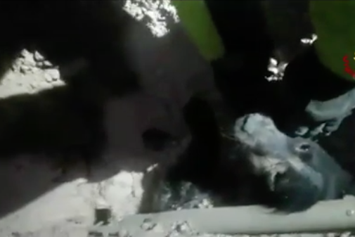 Alors qu’ils étaient occupés à retirer les lourdes pierres d’un bâtiment détruit, les pompiers de Norcia ont ainsi découvert un chien complètement enseveli au milieu des gravats. C’est une patte dépassant des ruines qui les a alertée.
