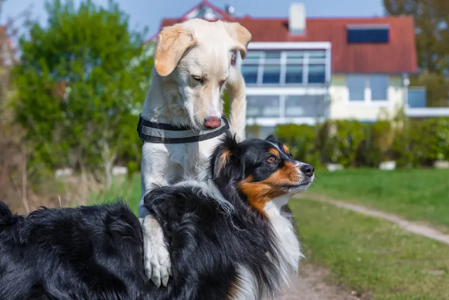 Tussen honden onderling kan het bestijgen van de andere hond een teken van speels gedrag zijn. Dit is geen probleem als de andere hond hierdoor niet van slag raakt. Vaak gebeurt het zelfs om de beurt.